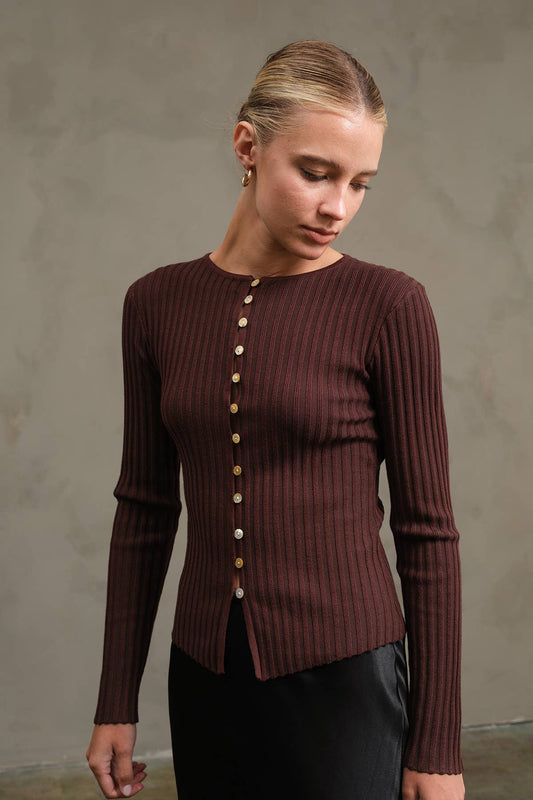 Sleek Silhouette Knit Button Up