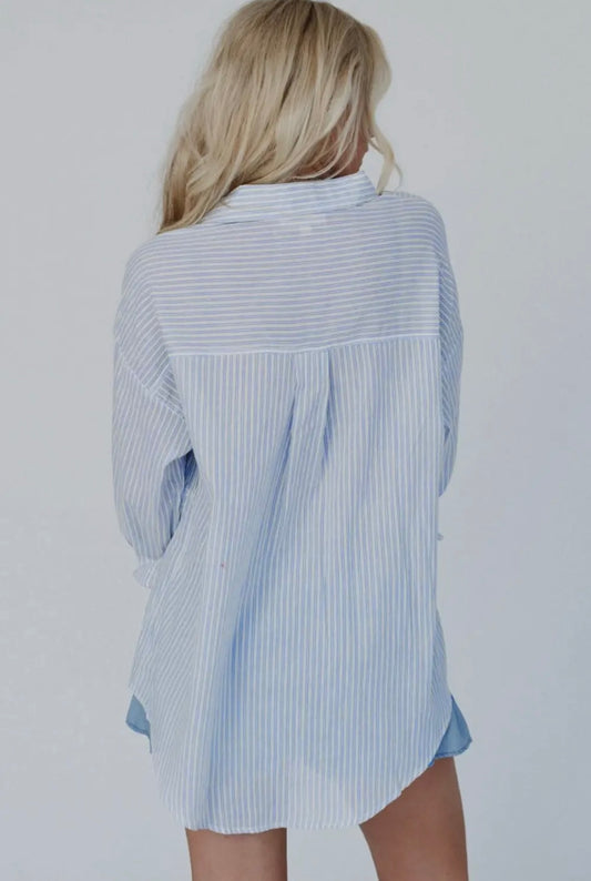 Sky Blue Stripes Button Up Long Sleeve Shirt
