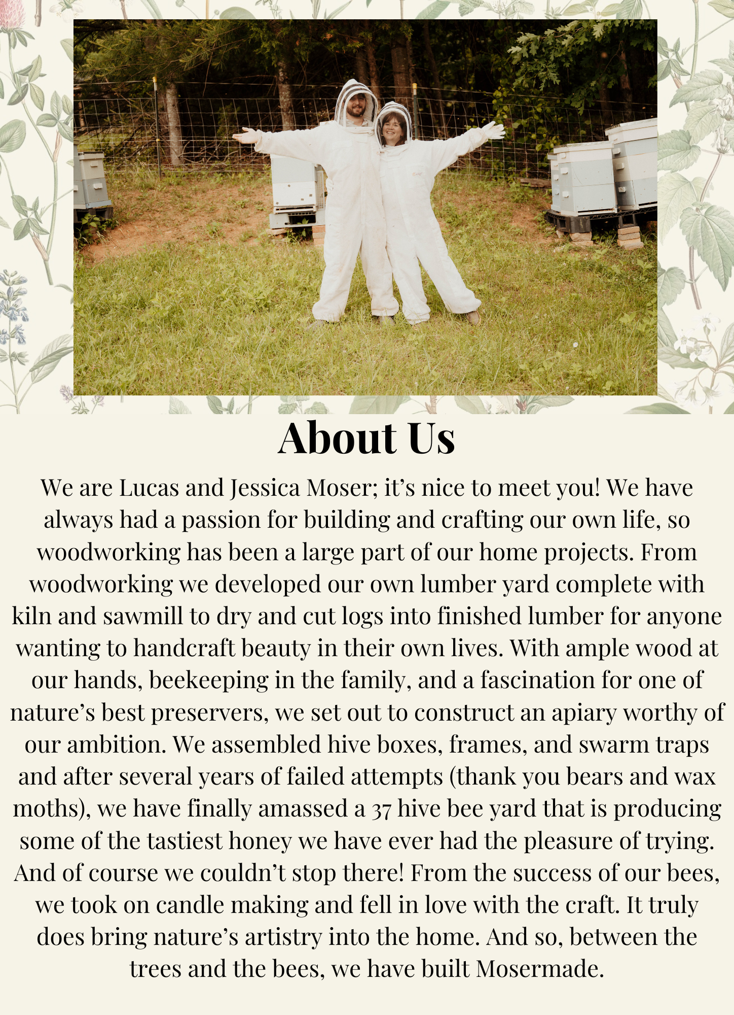 16 ounces of raw, unfiltered wildflower honey poured into a sturdy, unique jar you can repurpose when you’ve devoured it all. Mosermade's honey is locally sourced (from their own backyard!) in Bedford, VA and is sustainably harvested. Notes and flavors may include: tulip poplar, paradise, sumac, sourwood, maple, goldenrod, blackberry, mimosa tree, and clover.