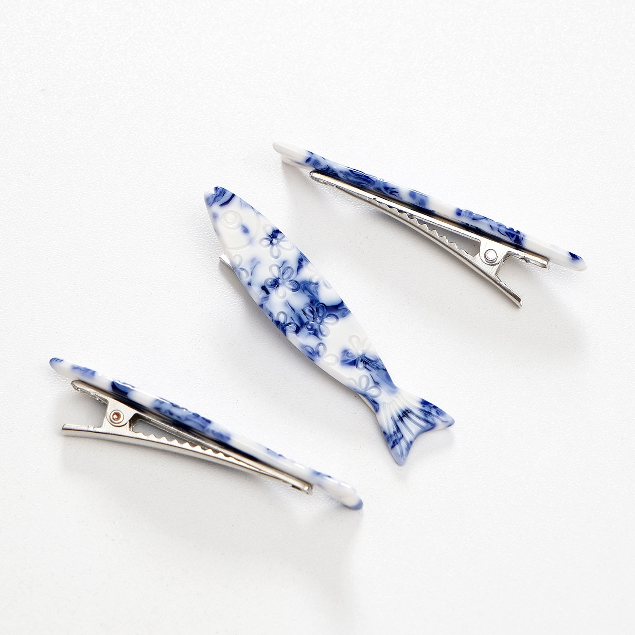 Blue Floral Sardine Hair Barrette