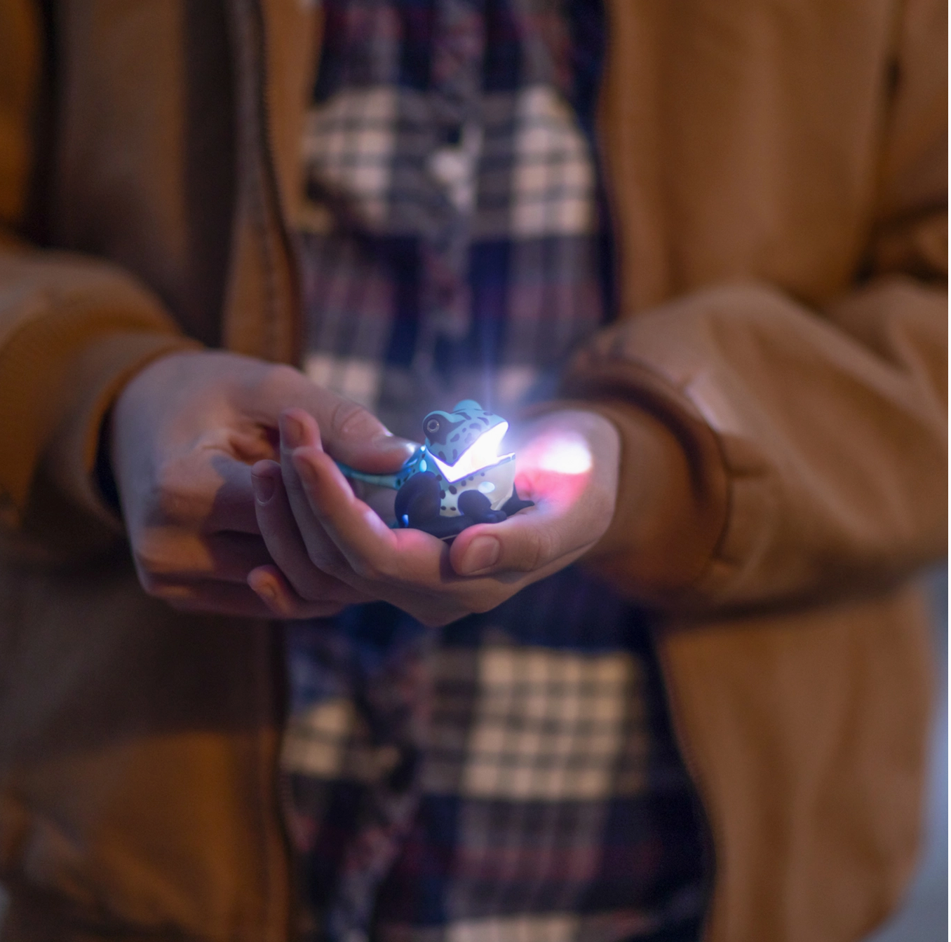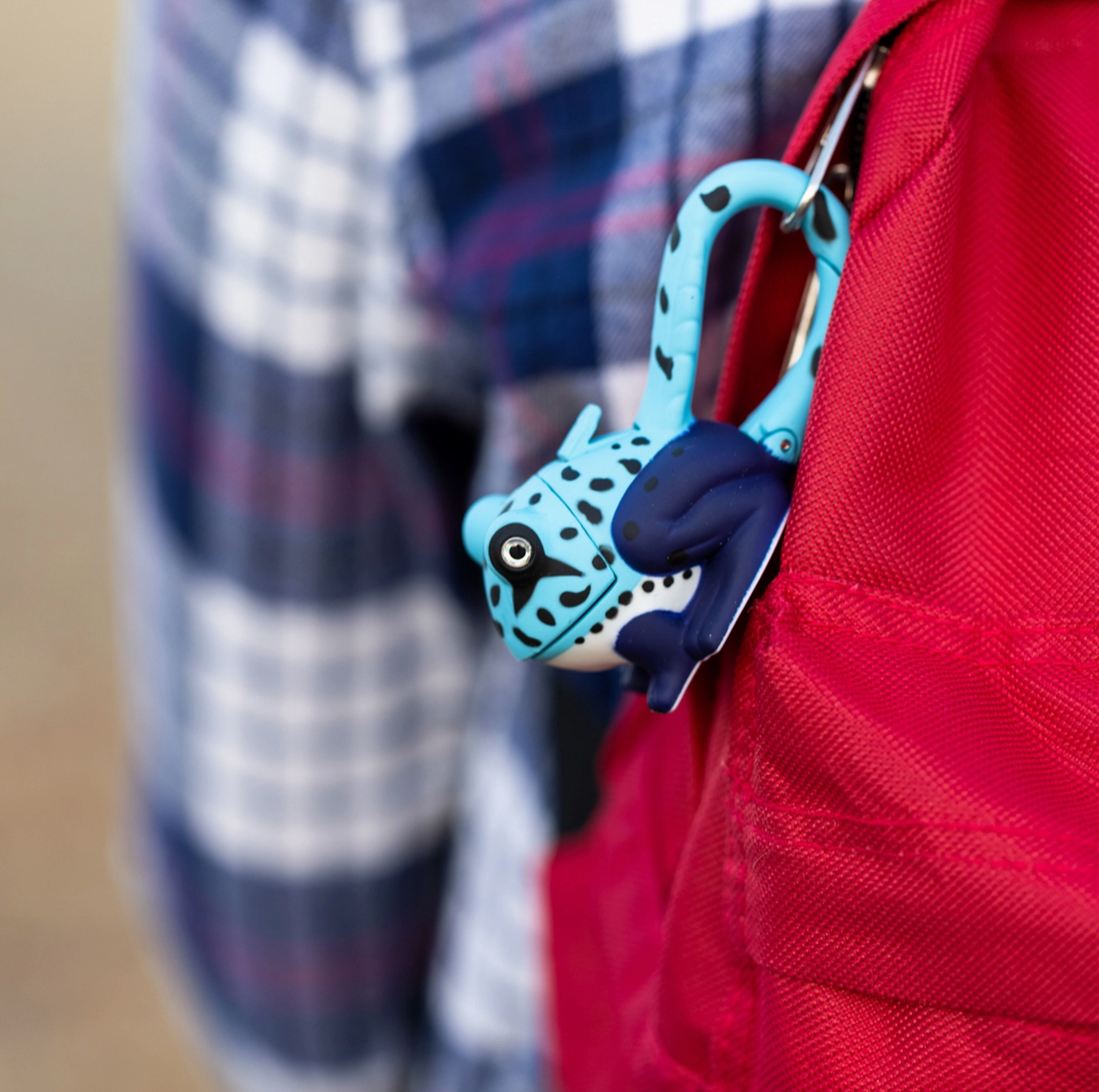 This nature-inspired carabiner flashlight is cute and multi-functional! Use your finger to press the button on the back of the flashlight and the mouth opens to illuminate the night. The carabiner tail is perfect for clipping onto backpacks, key chains, bike baskets etc.