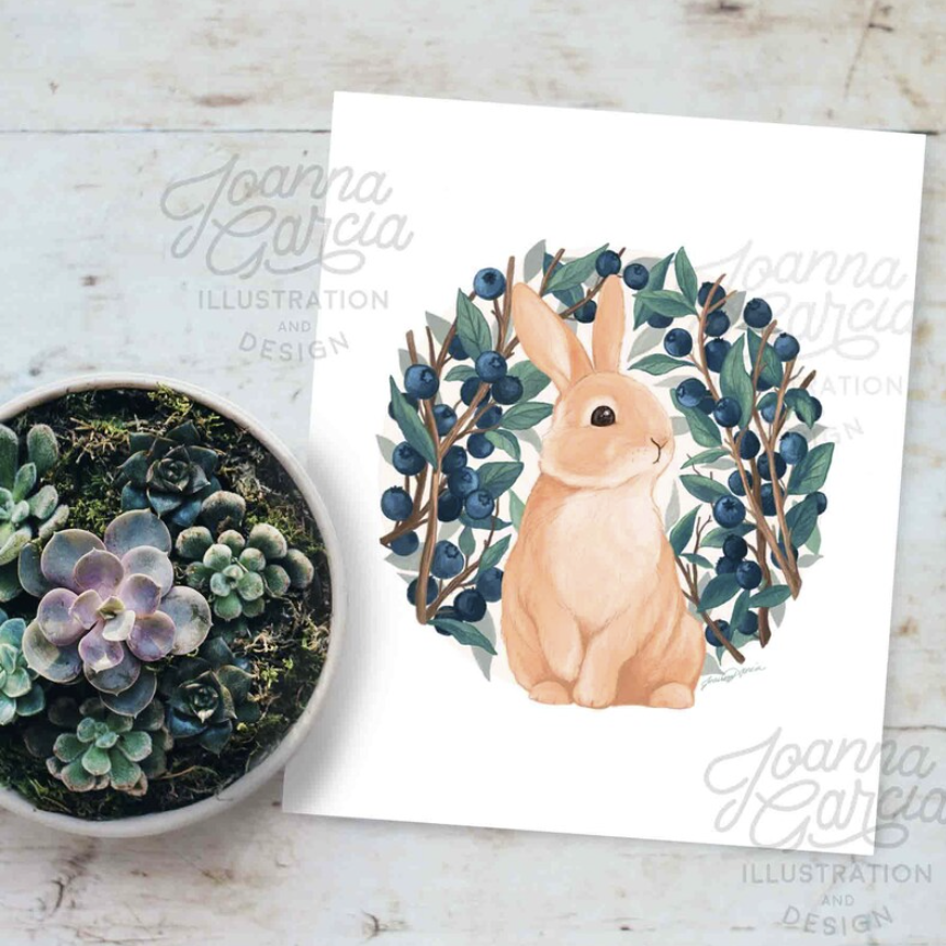 "Bunny and Blueberries" Art Print - Joanna Garcia Art