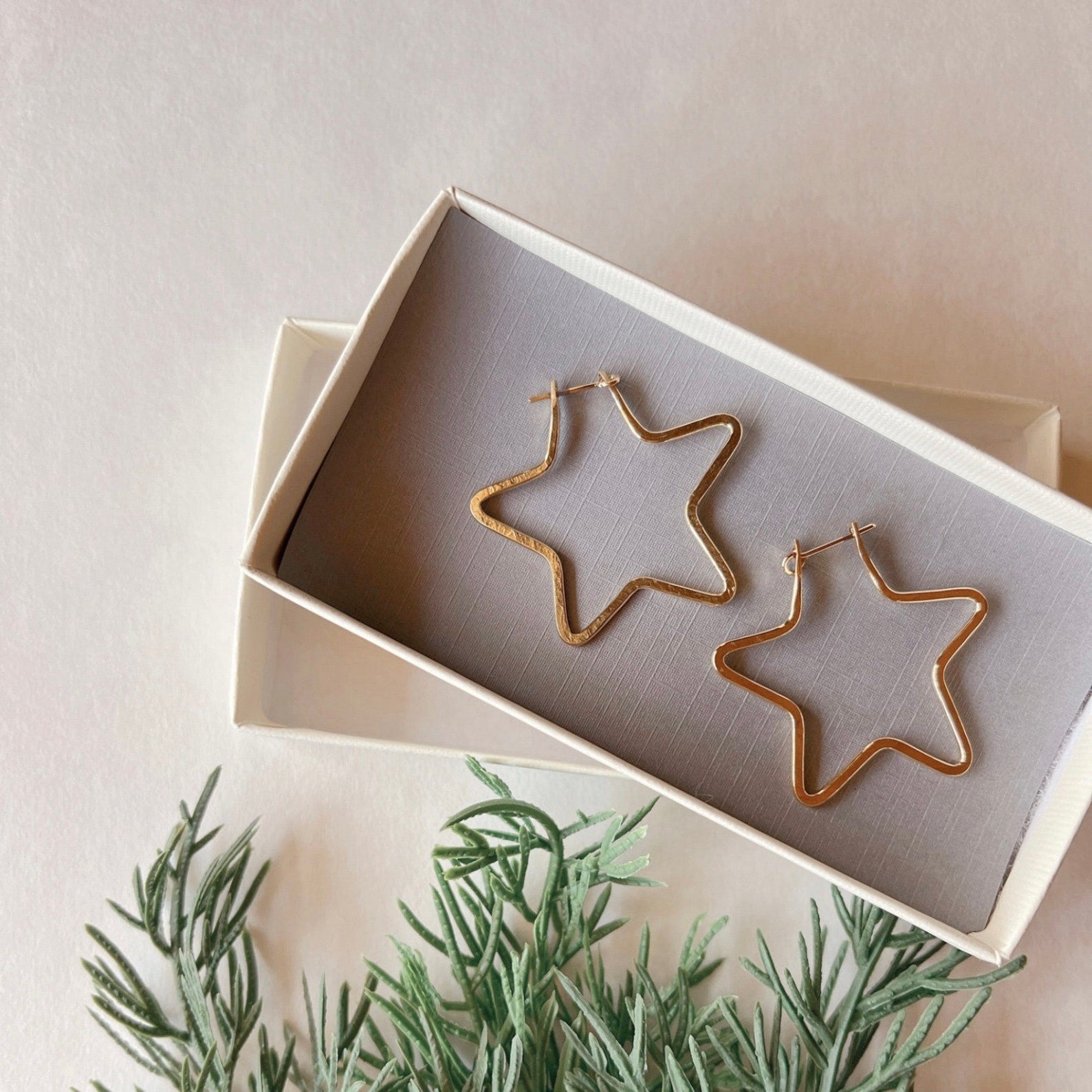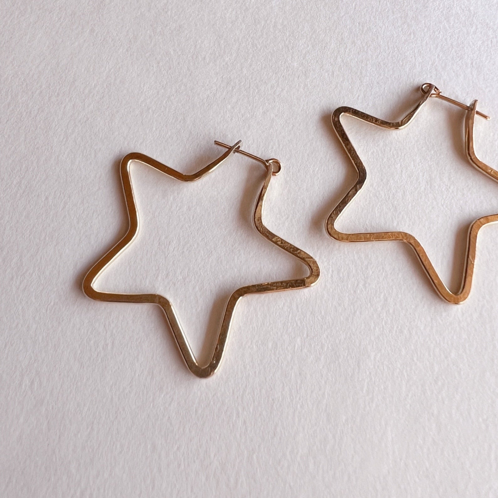 -hand formed star hoop (measures approximately 1 1/2” X 1 1/2” at widest point)