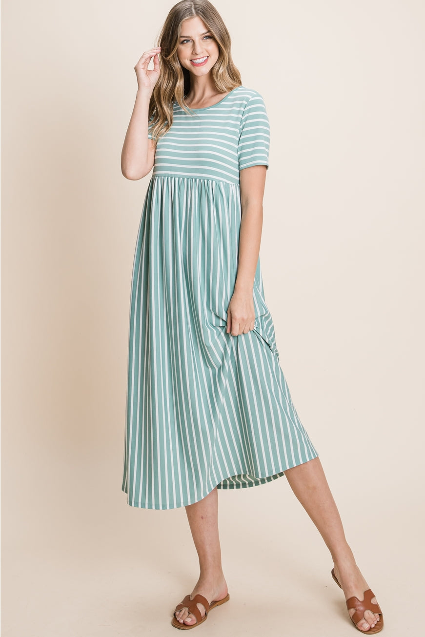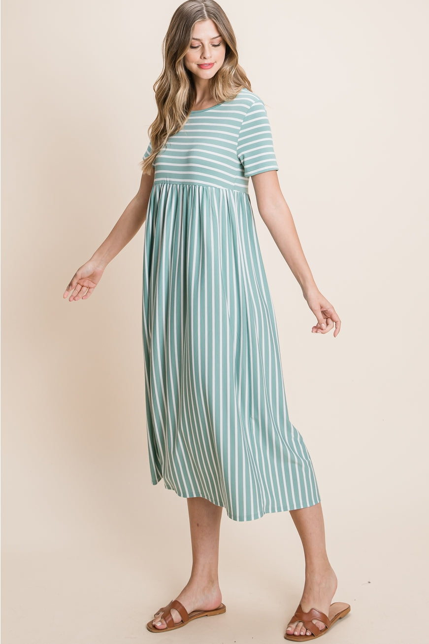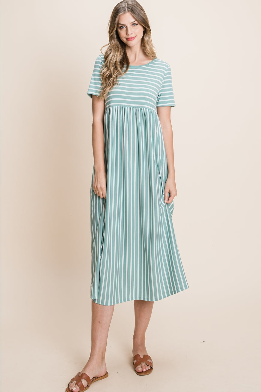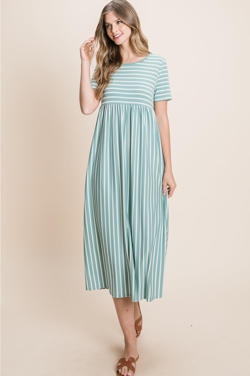 Cool & Casual Striped Midi Dress - Robin's Egg