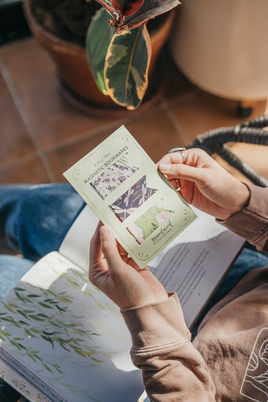 Hold your place in any book with these fold-over magnetic bookmarks, featuring beautiful original hand painted artwork by Ruth Chou Simons.