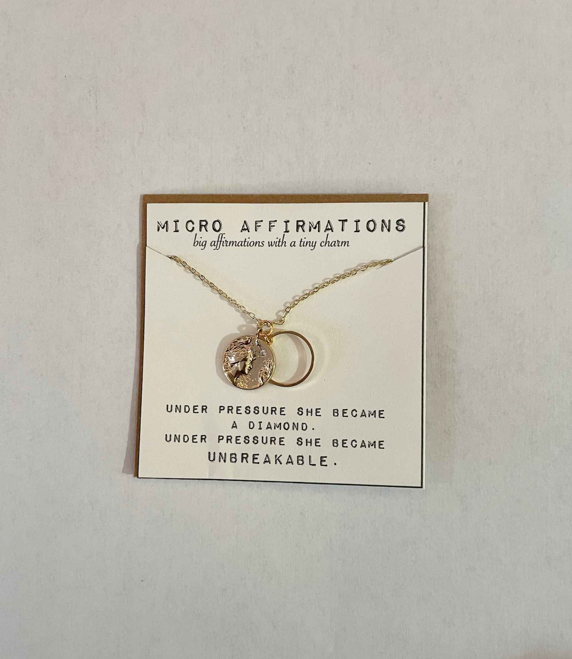 Each Micro Affirmation necklace has a special message on the card accompanying it to encourage a loved one, new friend, or yourself!