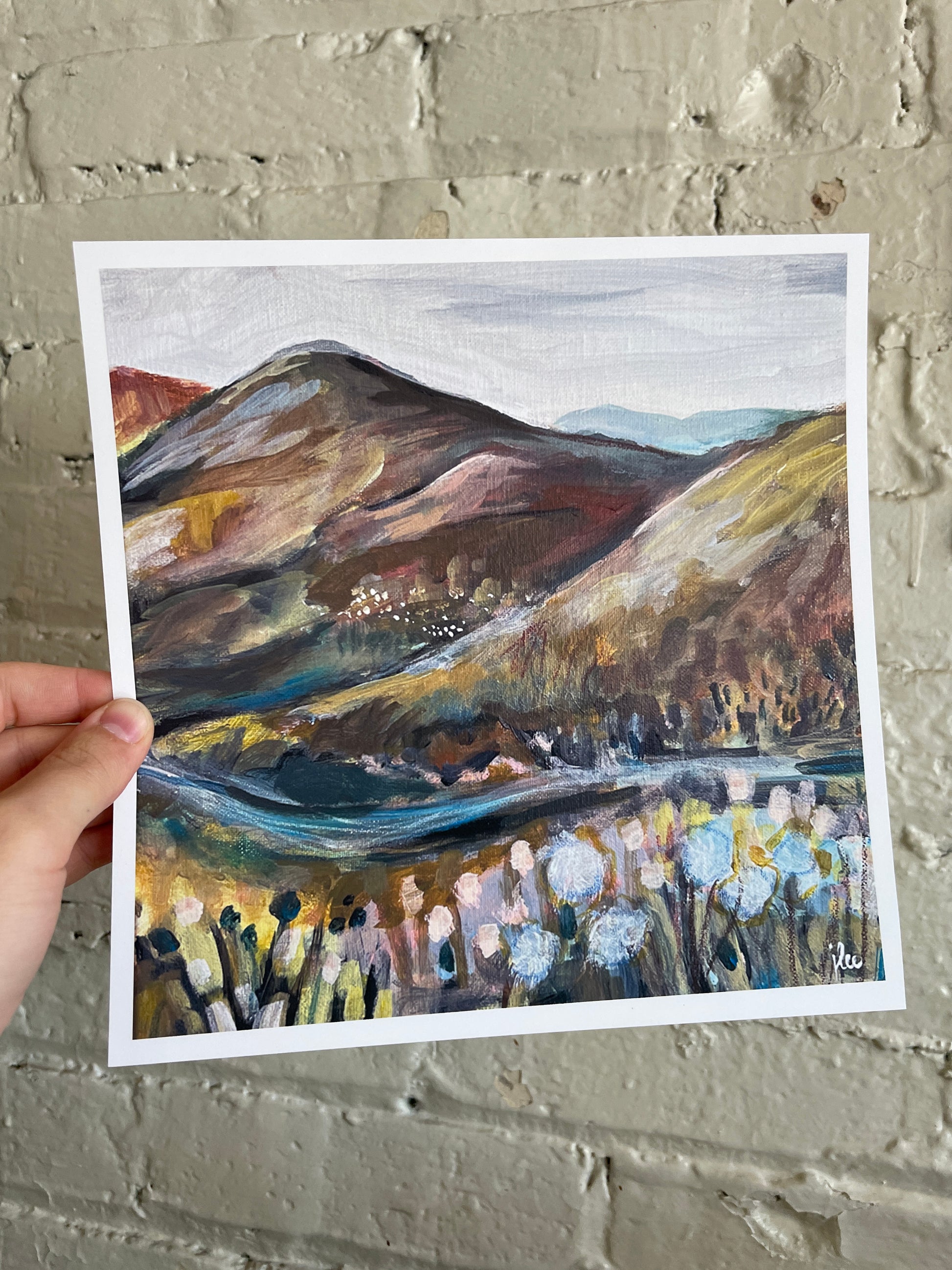 Take in the beautiful landscapes of the Blue Ridge Mountains, captured in paint and printed to display in your home! This painting can be displayed on its own, or displayed with its partner, "Early Spring I"; when put next to each other, it looks like you're looking over the hills of the Blue Ridge Mountains!