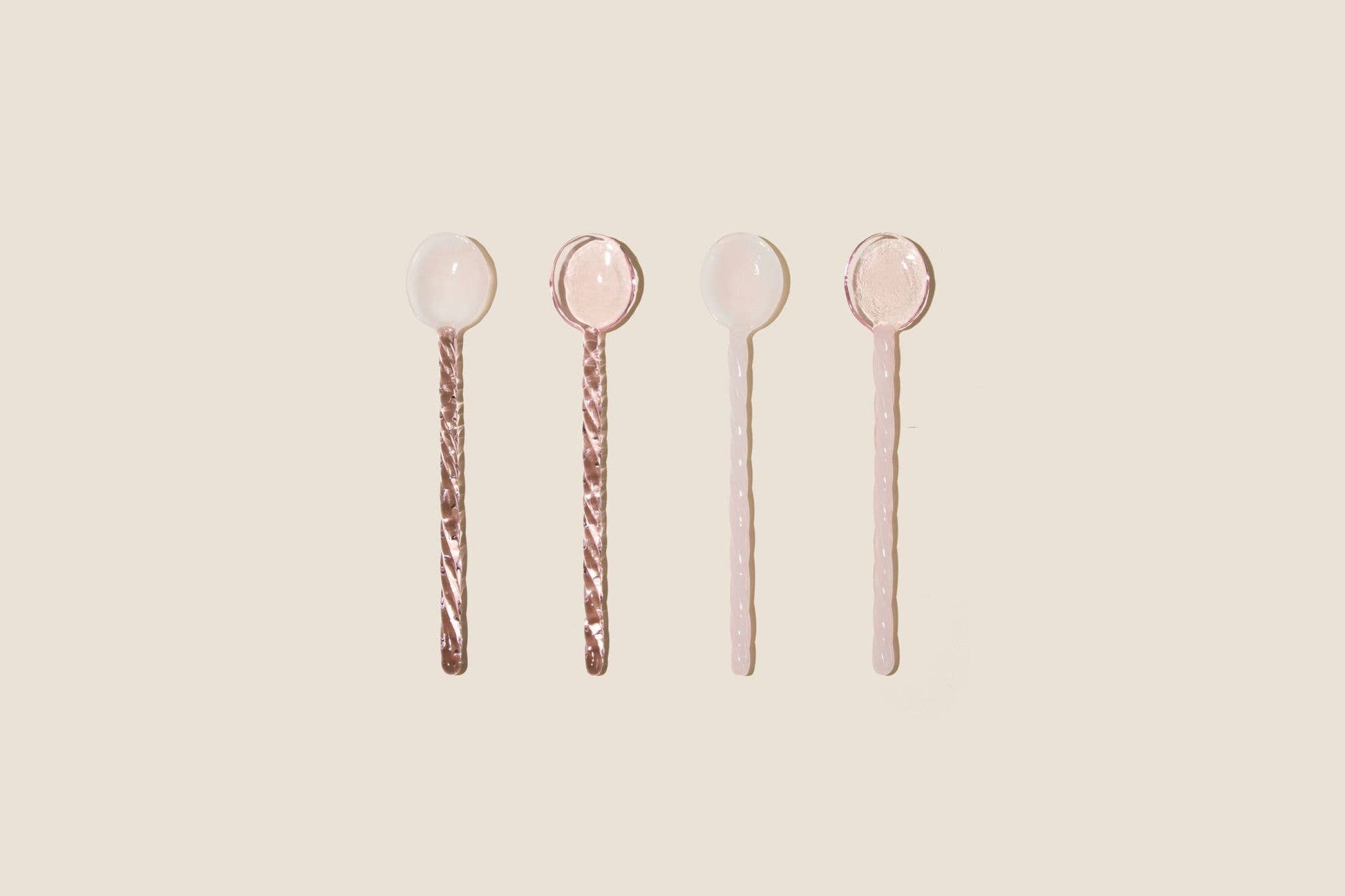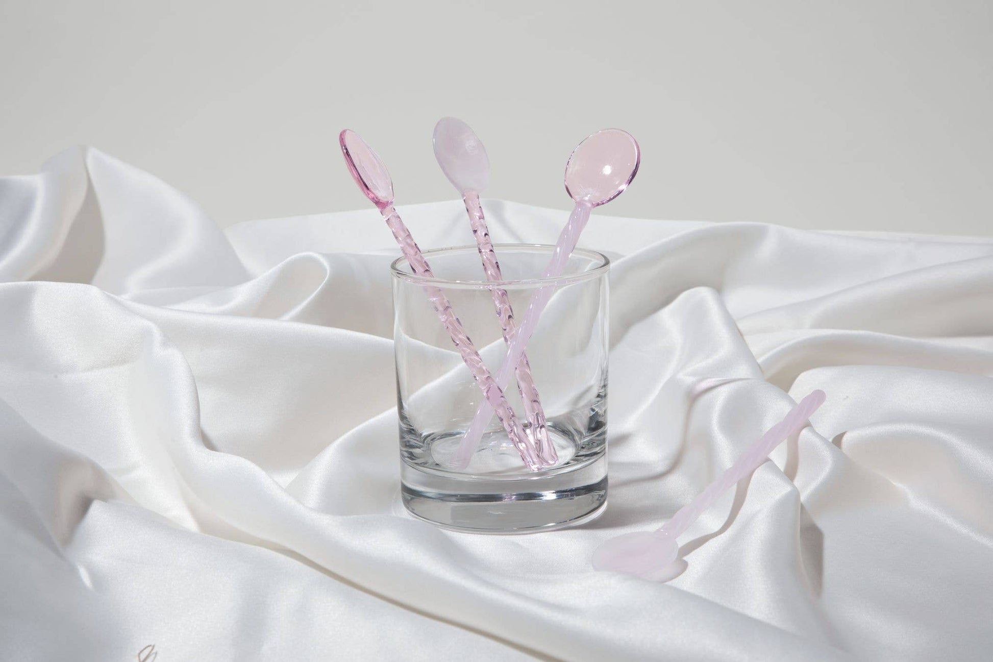 These spoons are sure to cause a stir! This set of 4 handblown stirring spoons is the perfect utensil for stirring chocolate, ice cream, mixing drinks, and other creamy treats. Handmade from high-quality borosilicate glass.