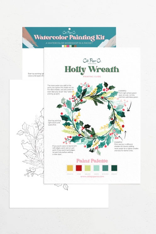 Paint your own watercolor wreath with this outline and paints. This kit is compact and portable- everything packaged together in a complete packet. Just add water to the included water brush and you can paint anywhere! No prior experience necessary, beginner friendly.