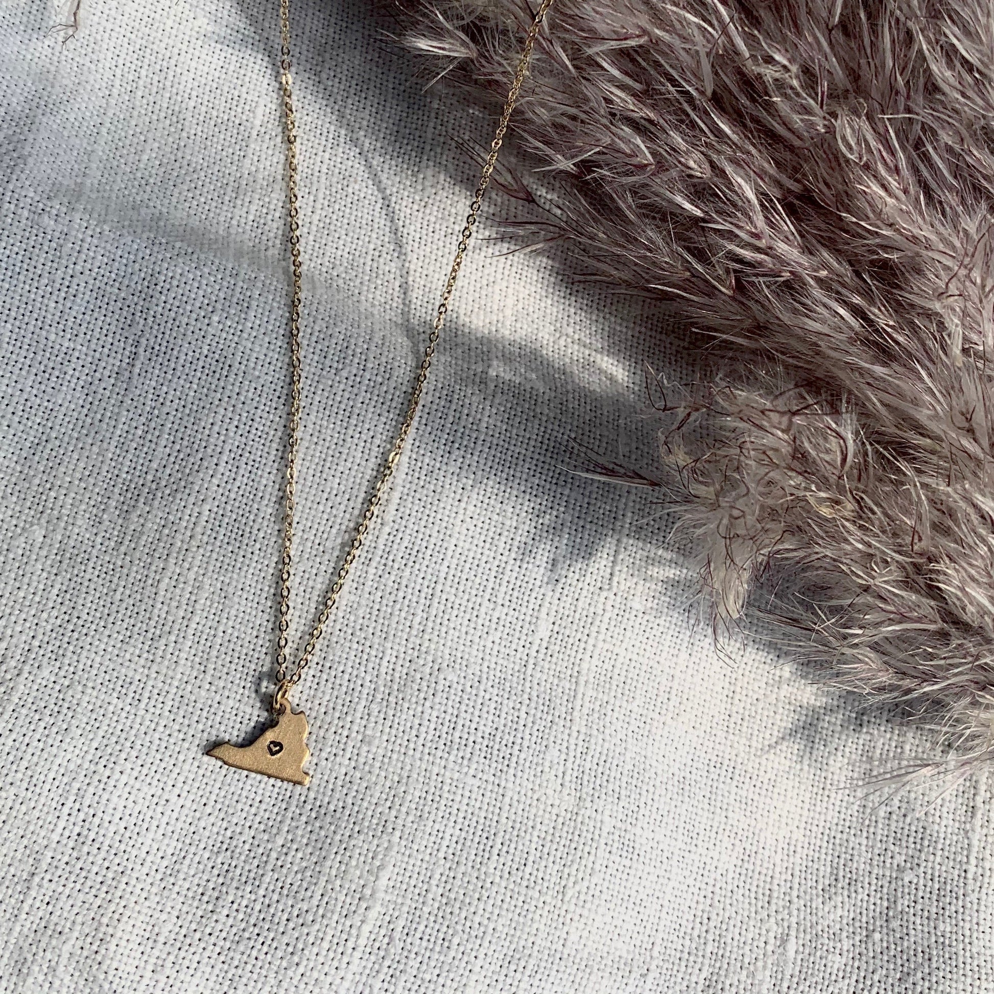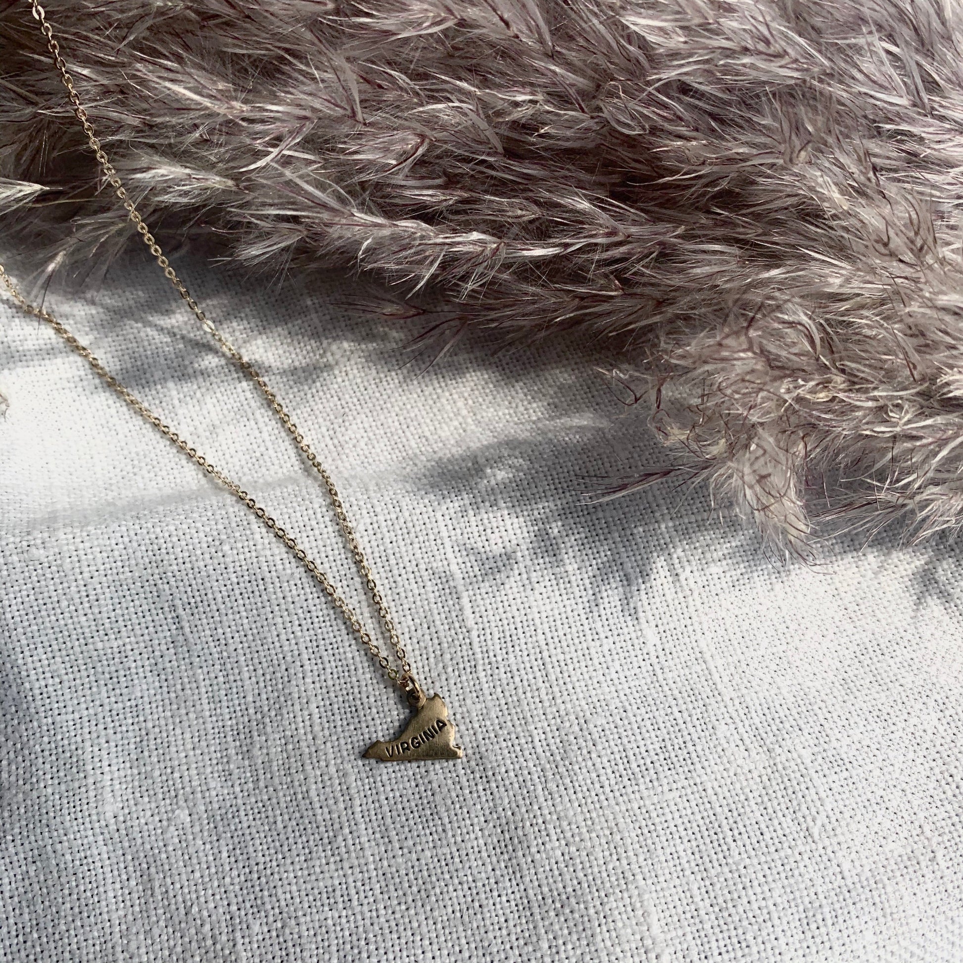 Remember where you come from or celebrate where you're going with these adorable memento necklaces. Each state outline charm is either stamped with "VIRGINIA" or a little heart (smack-dab in the Blue Ridge Mountains!). Each piece of jewelry makes a great keepsake or gift.