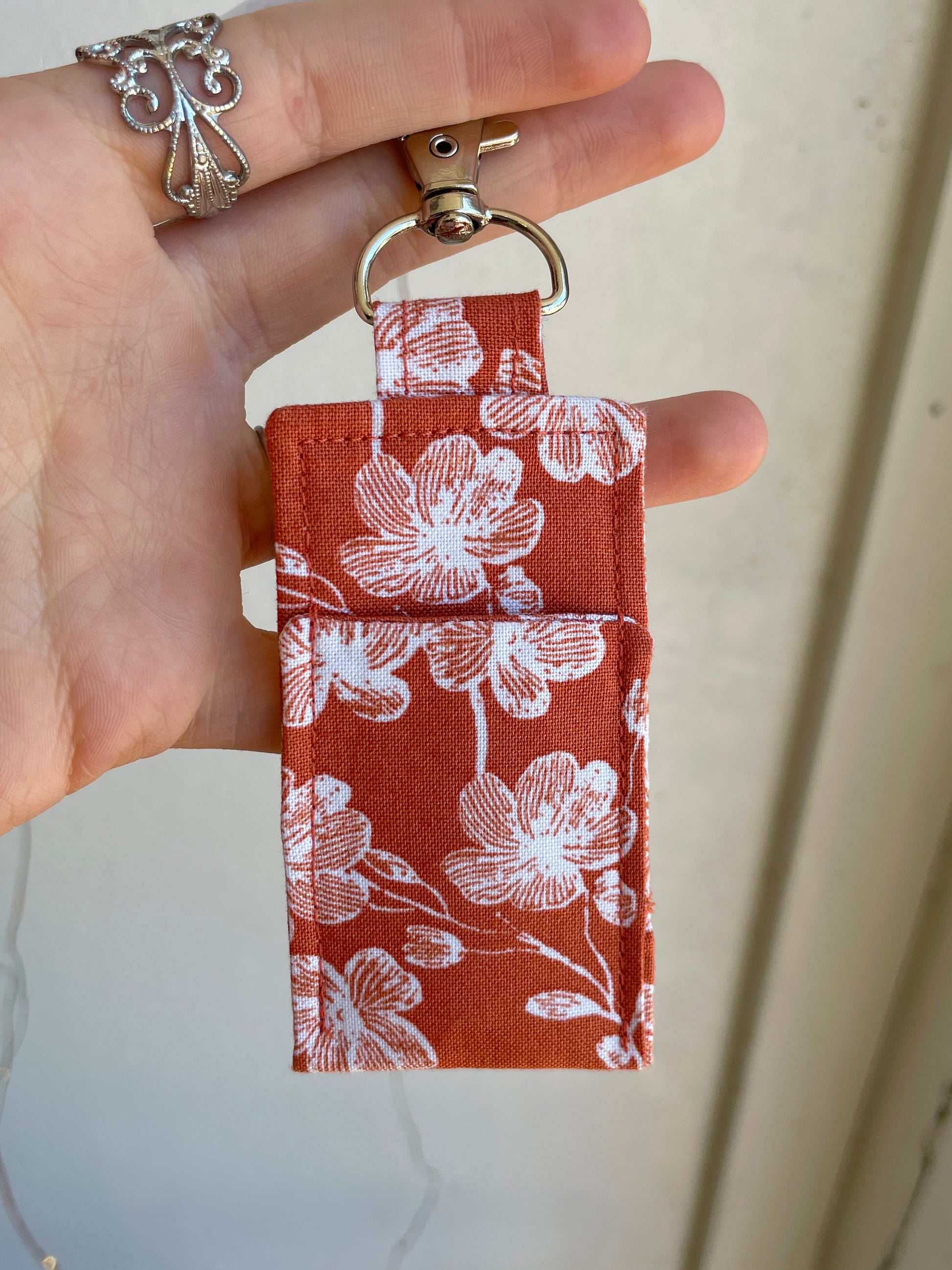 Never be separated from your lip balm again! These colorful keychains keep your lip product safe, and look adorable while doing it. They are cut and sewn from high quality floral fabric. Add a pop of color to any key ring, purse, or handbag.