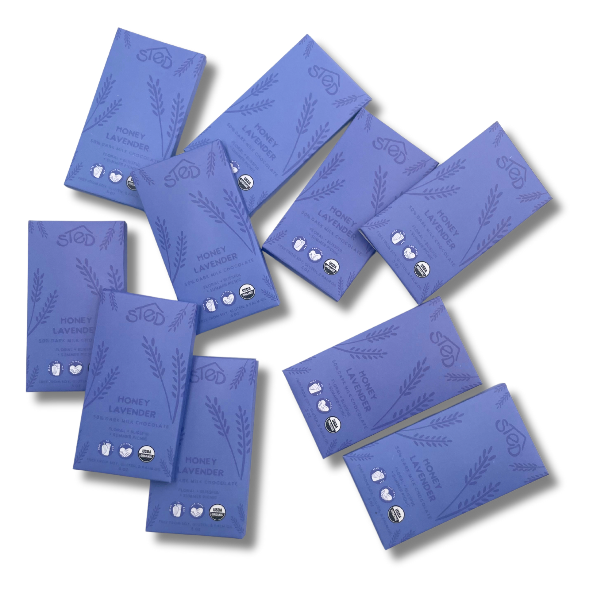 This is a bar to be savored. Our Honey Lavender chocolate brings together creamy milk chocolate with gentle notes of real lavender — not too floral, just enough to transport you. Swirls of natural honey are folded in, offering a delicate sweetness that lingers like the memory of a sunny afternoon.