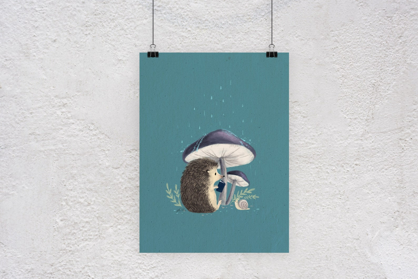 "Rainy Day Friends" Hedgehog & Snail Art Print - Joanna Garcia Art