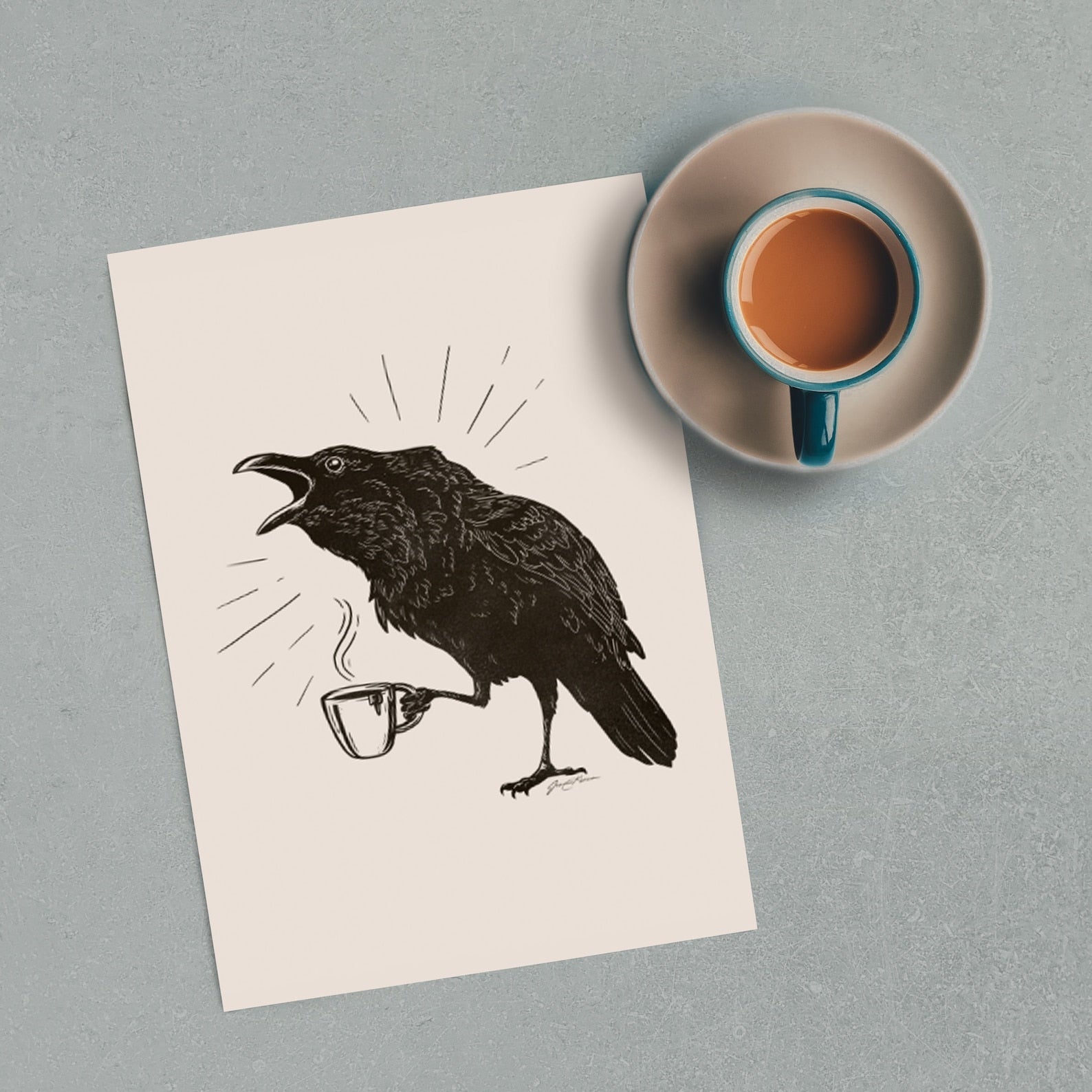 "Rise and Shine" Raven & Coffee Print - Joanna Garcia Art