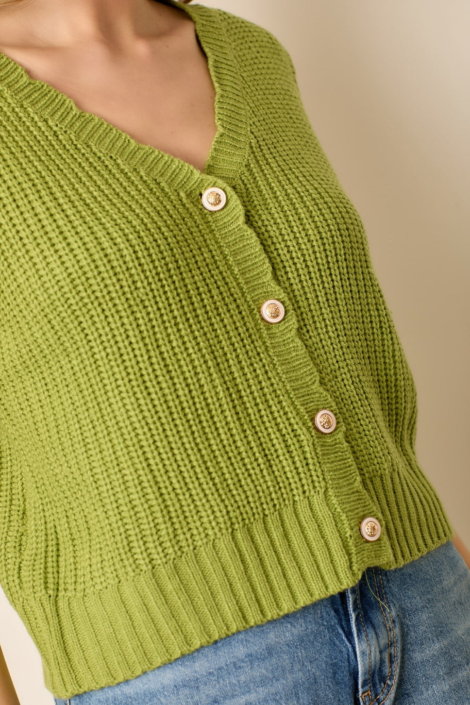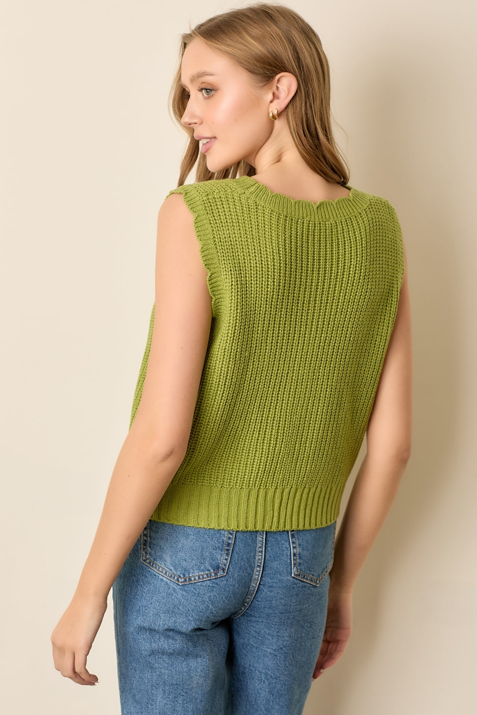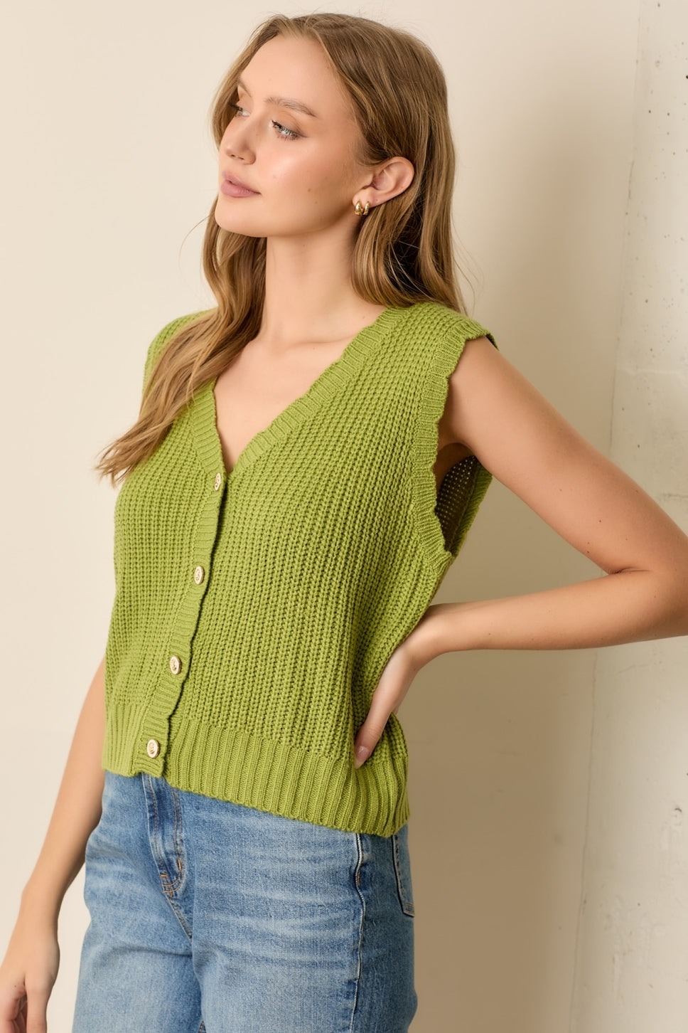 Sweet Scallops Button-Up Vest - Avocado