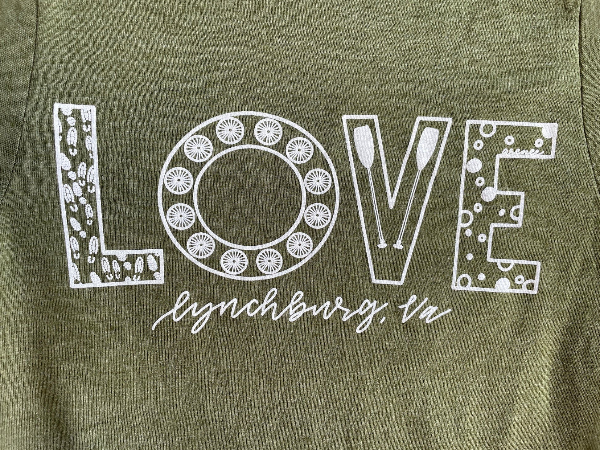 Virginia is for (Local) Lovers! A tribute to signature "love" sign along the Percival's Island trail in downtown Lynchburg- now in youth sizes!- this tshirt is the perfect comfy option for a weekend out in our town!